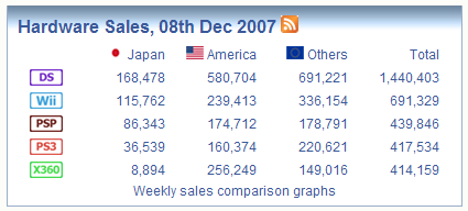 Evidentemente, esto cambia semana a semana, pero no deja de ser un buen indicador de que se han pasado las vacas flacas tanto para la PS3 como para la PSP, que está desatada... :)